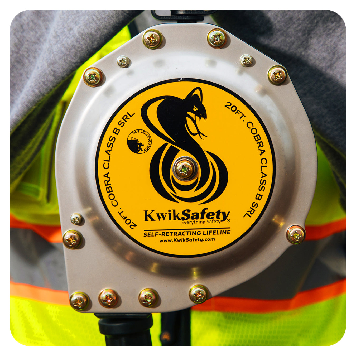 View full detailsProduct Description NO ENTANGLEMENT! - Never worry about tripping or getting tangled in the KwikSafety COBRA 6ft Single-Leg (Class 1) Self Retra...