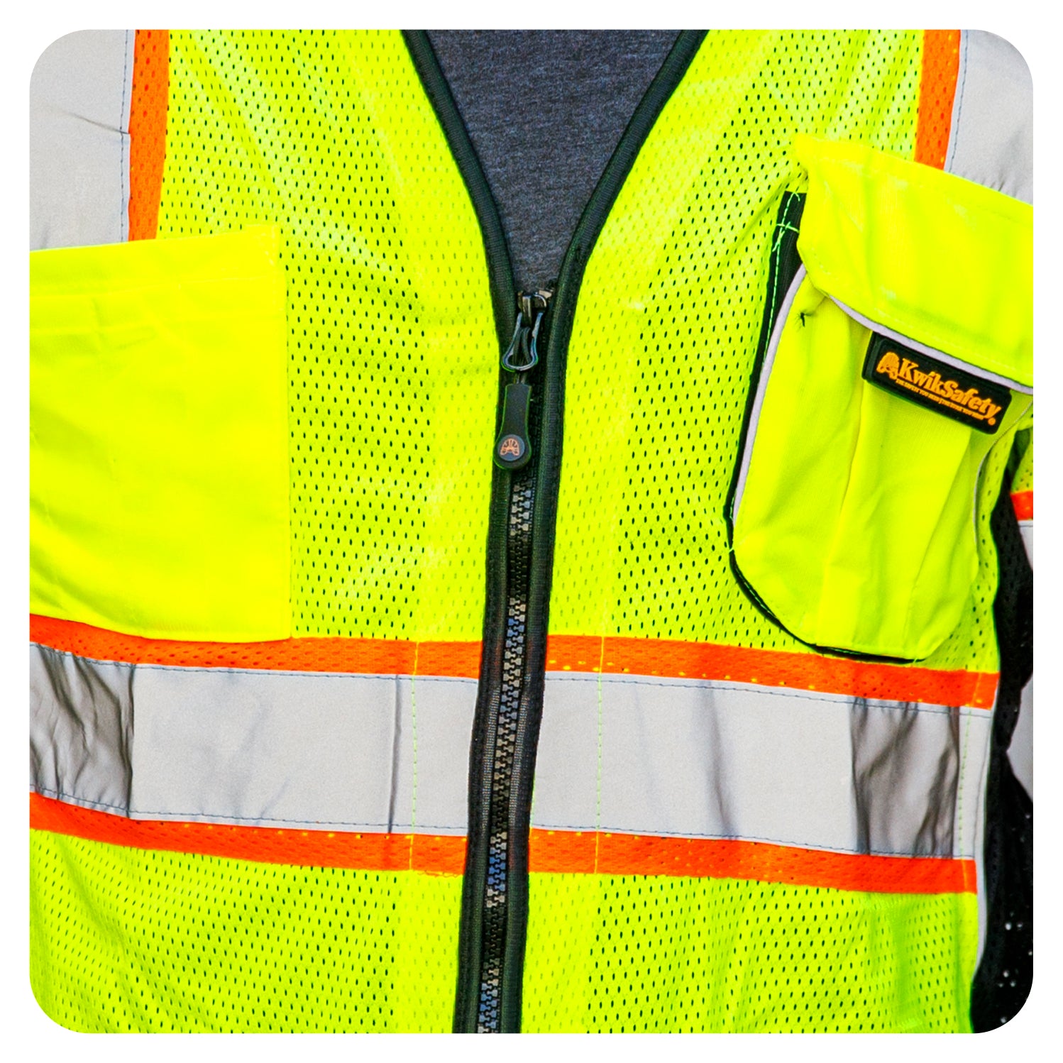 Explore our DUCHESS Class 3 safety vest, designed specifically for women who demand both safety and style on the job. Made with breathable hi-vis mesh and accented with bold black side panels, this vest ensures high visibility in hazardous environments while offering a flattering, comfortable fit.