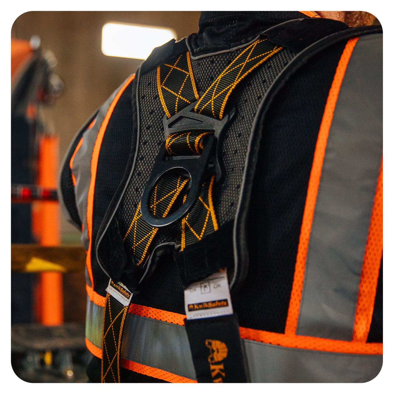 Our DIAMONDBACK safety harnesses are OSHA-compliant and tested to meet ANSI Z359.11-2021 standards, this premium line of DiamondBACK harnesses are built to withstand tough environments while keeping you protected at heights!